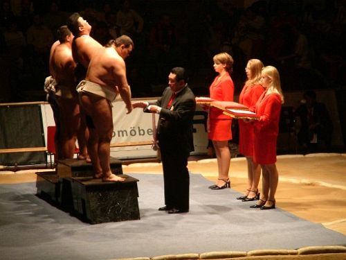 Am Samstag fanden zunächst die Vorrunden-Kämpfe statt. Um 19.00 Uhr sollten eigentlich die Finalkämpfe beginnen, aber der Zeitplan war mächtig durcheinander geraten, da die Vorrunden erst kurz nach 19.00 Uhr vorüber waren. So begann das Finale mit dem Einzug der Nationen eine halbe Stunde später als geplant. Nach einigen Ansprachen führte Alexander von der Groeben zunächst in die Regeln des Sumo ein. Hierzu demonstrierten 2 Sumotori des japanischen Teams einige Techniken, bevor der eigentliche Wettkampf begann.