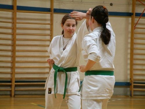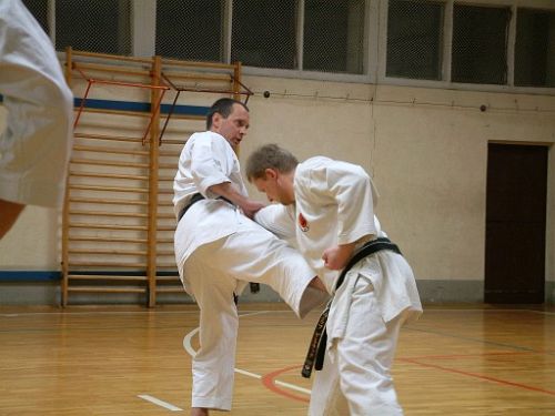 Bei den Anfängern stand in beiden Trainingseinheiten am Vormittag und Nachmittag schwerpunktmäßig Kihon und Gohon Kumite in verschiedenen Kombinationsformen auf dem Programm, was jeden forderte. Neben neuen Varianten wurden auch alte Übungsformen vertiefend geübt.