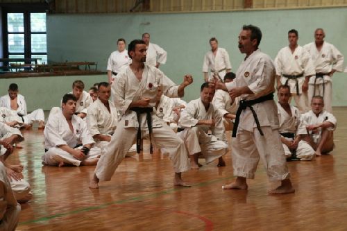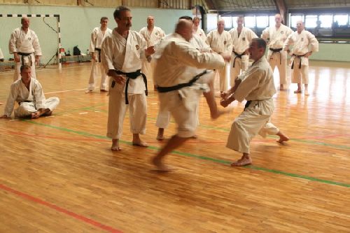 In diesem Jahr fand das 4. AJKA-I Instructor-Camp in Zalaszentgrot (Ungarn) statt. Vom 25 bis 28.06.2008 konnten 17 Instructoren aus dem SRD (aus unserem Verein Marco Kessler und Ralph P. Görlach) gemeinsam mit ungarischen und amerikanischen Karateka ihr Wissen erweitern. Die Leitung des Camps übernahmen dabei Sensei Safar, 9. Dan, und Sensei Otis, 7. Abgesehen von den interessanten, anstrengenden aber vor allem lehrreichen Einheiten wurden im Laufe des Camps auch Prüfungen durchgeführt.