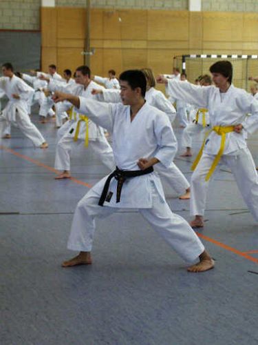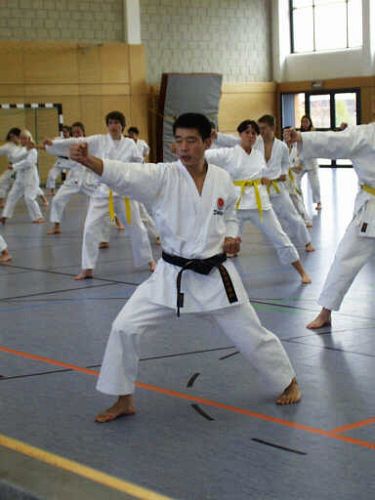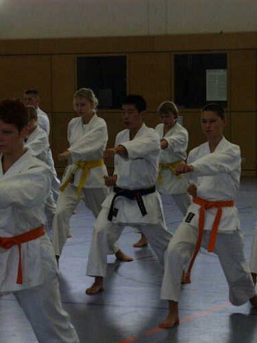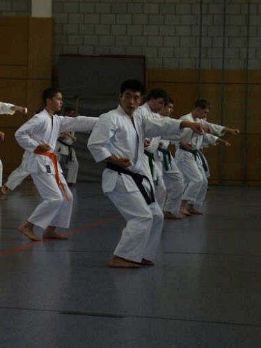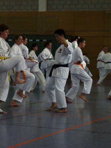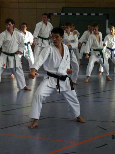 Am Sonntag vormittag war jeweils nur eine Trainingseinheit angesetzt. Im Anfängerbereich wurden noch einmal am Partner diverse Block- und Kontertechniken geübt, wobei Ohta Sensei sich an den am Vortag trainierten Kata orientierte. In der zweiten Trainingsgruppe dann folgte eine weitere Kata: Kanku Dai. Aufgrund diverser zu übender Applikationen aus dieser Kata wurde die Trainingszeit gegen Ende dann doch etwas knapp, aber Ohta Sensei setzte das Training fort, nachdem sich aus den Reihen der wissbegierigen Karateka kein Widerspruch erhob, fort – denn Ohta Sensei hatte vorab extra noch einmal nachgefragt, ob es denn auch recht sei, dass das Training fortgesetzt werde. – Natürlich! Keine Frage. So endete dieses Training eine halbe Stunde später als geplant, jedoch konnten wir wieder viel von diesem Wochenende mit nach hause nehmen, das es gilt, nun umzusetzen.