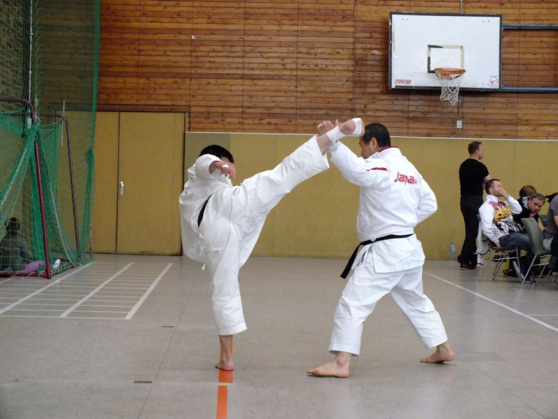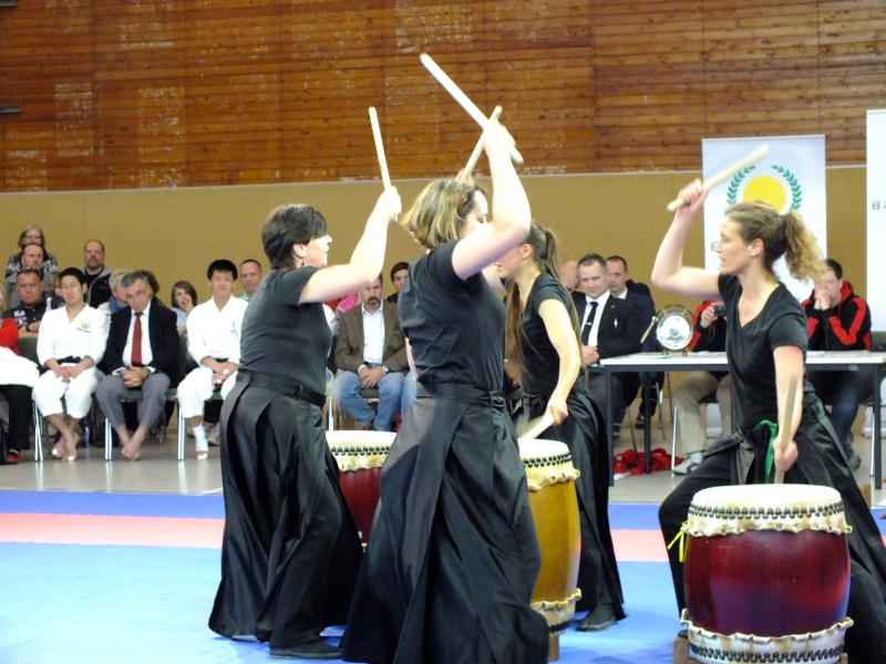 Nach dem Training gab es am Nachmittag noch ein Freundschafts-Turnier gefolgt von einer Vorführung. Besonders beeindruckend war in diesem Zusammenhang die Trommel-Vorführung eines japanischen Künstlers. Er trommelte derart passioniert, dass dabei sogar zwei massive Trommelstöcke zu Bruch gingen. Dies erstaunte sogar die Karatemeister.