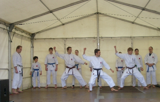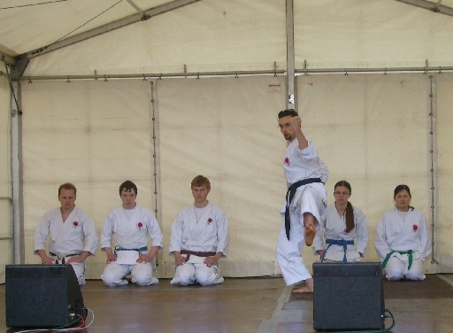 Da im Vorfeld noch ein weiterer wichtiger Termin, die deutschen Meisterschaften in Berlin, auf dem Plan standen, war unsere Vorbereitungszeit doch recht kurz. Trotzdem gaben alle ihr Bestes. Innerhalb einer Woche erarbeitete Ralph ein Programm für vier einzelne, voneinander unabhängige, Vorführungen. Sie repräsentierten jeweils wichtige Aspekte unseres Trainings und des Karate.