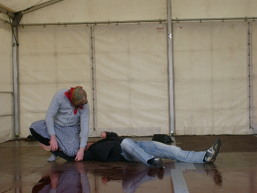 Die 1. Generalprobe fand Freitag vor dem Termin statt. Ausgegangen sind wir von einer Fläche mit der Größe 4 x 6 m, doch es stellte sich heraus, dass es doch 6 x 6 Meter werden würden. So konnten wir mit etwas Spielraum alle Techniken noch einmal durchgehen. Auch wurden Freitag die letzten Änderungen in Richtung der Aufstellung vorgenommen. Am Ende konnten wir den ersten und zweiten Teil der Vorführung festmachen. Bis auf kleinere Änderungen in der Länge der Musik lief alles relativ reibungslos. Größtes Manko war nicht die zu Anfang falsche Musik, sondern leider einige Teilnehmer, die Freitag nicht an der Probe teilnehmen konnten.