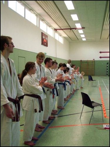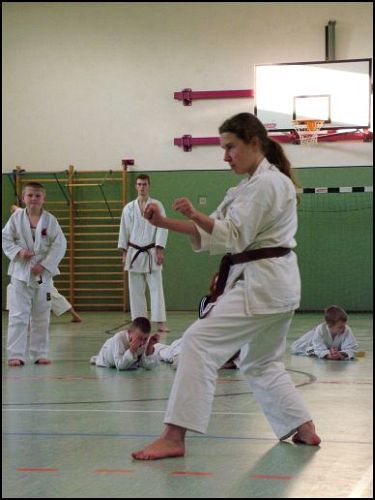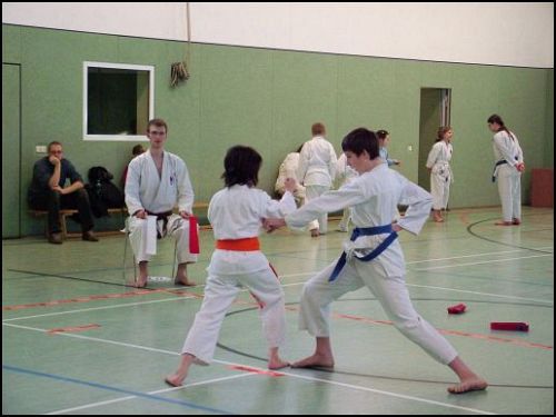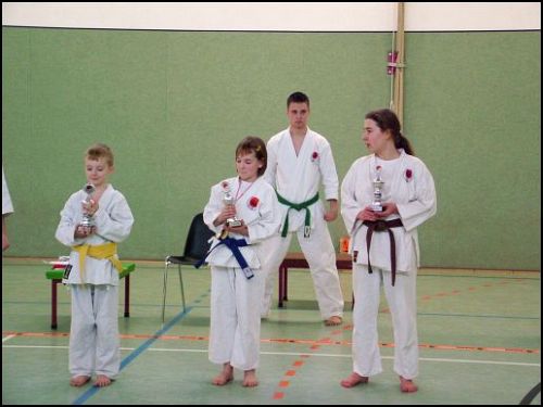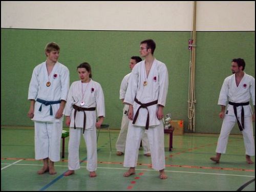 Auch in der Gruppe C gab es sogar ein zweifaches Stechen. Durch Punkte-Gleichstand mussten Jenny und Richard in der Kata nochmals gegeneinander antreten. Hier konnte sich Jenny durchsetzen. Zuvor hatte sich Richard allerdings im Kumite den Sieg im Freikampf for Jenny gesichert. Damit war auch hier ein Punkte-Geichstand zu verzeichnen. Die beiden entschieden sich, die Entscheidung in einer erneuten Kumite-Begegnung auszutragen. Diesmal konnte sich Jenny trotz des Größenvorteils von Richard behaupten und den Sieg sichern.