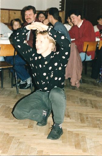 Der große Saal der Gaststätte in Thekla in Prestewitz stand unserem Verein zur Verfügung, wo die Wirtin bereits eine große Tafel aufgebaut hatte. Zunächst jedoch warteten wir – wenn auch vergebens, denn die „Fee mit den Geschenken“ war noch nicht eingetroffen. So mußten wir also ohne sie anfangen. Stolle und Gebäck gab es ebenso reichlich wie Kakao oder Kaffee. Nach dem Essen war es dann so weit. Jeder der Teilnehmer sollte ein kleines Stückchen darbieten. Ob Gesang, Gedichte, Witze oder Sketche – alles war vertreten. Das eine besser oder schlechter, aber Spaß hatten sicherlich alle. Endlich traf auch Anja mit den Geschenken ein. Sie hatte sich ein wenig in der Zeit vertan. Sie glaubte nämlich, daß die Weihnachtsfeier erst um fünf Uhr anfangen sollte.