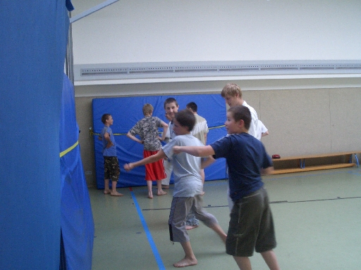 Mit von der Partie war natürlich auch unser Verein. Eingeladen von den Organisatorinnen, hatten wir die Aufgabe, sieben Jungen, im Alter zwischen 12 und 15 Jahren, unsere Kampfkunst näher zu bringen. Auch wenn wir zunächst etwas verwundert waren, dass man unsere Trainer bestellte, nahmen wir an. Unserem Engagement an den Schulen in unserer Umgebung ist es zu verdanken, dass man auf uns zu kam.