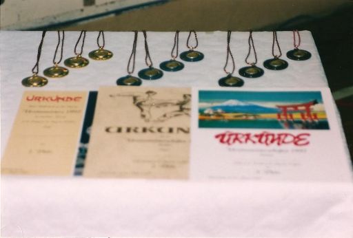 Doch kommen wir nun zu den eigentlichen Wettkämpfen. Entsprechend der vier Gruppen waren natürlich auch vier Medaillen zu vergeben. Um die Wettkämpfe möglichst schnell zu einer Entscheidung zu bringen und um andererseits aber auch das gesamte Repertoire der Wettkämpfer abzufordern, hatten wir beschlossen, die Wettkämpfe nach dem Fu-Ku-Go-System durchzuführen, d.h. es wurde im Wechsel Kumite und Kata abgefordert. Die Plätze wurden nach dem K.O.-System ausgetragen, wobei zusätzlich eine Trostrunde durchgeführt wurde.
